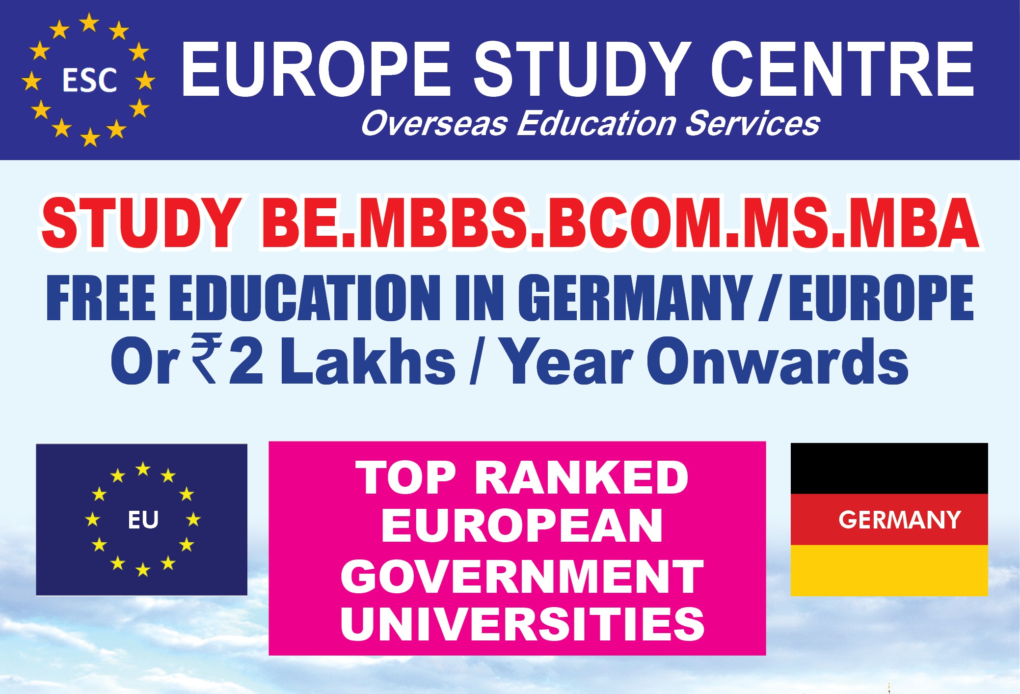 Overseas Education Facilitators & Admission co-ordination office Top Ranked Government Universities in Europe Representing 300 + Universities in Schengan Countries