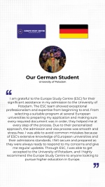 I would like to thank Europe Study Centre for executing my German university applications and visa processing hassle-...
